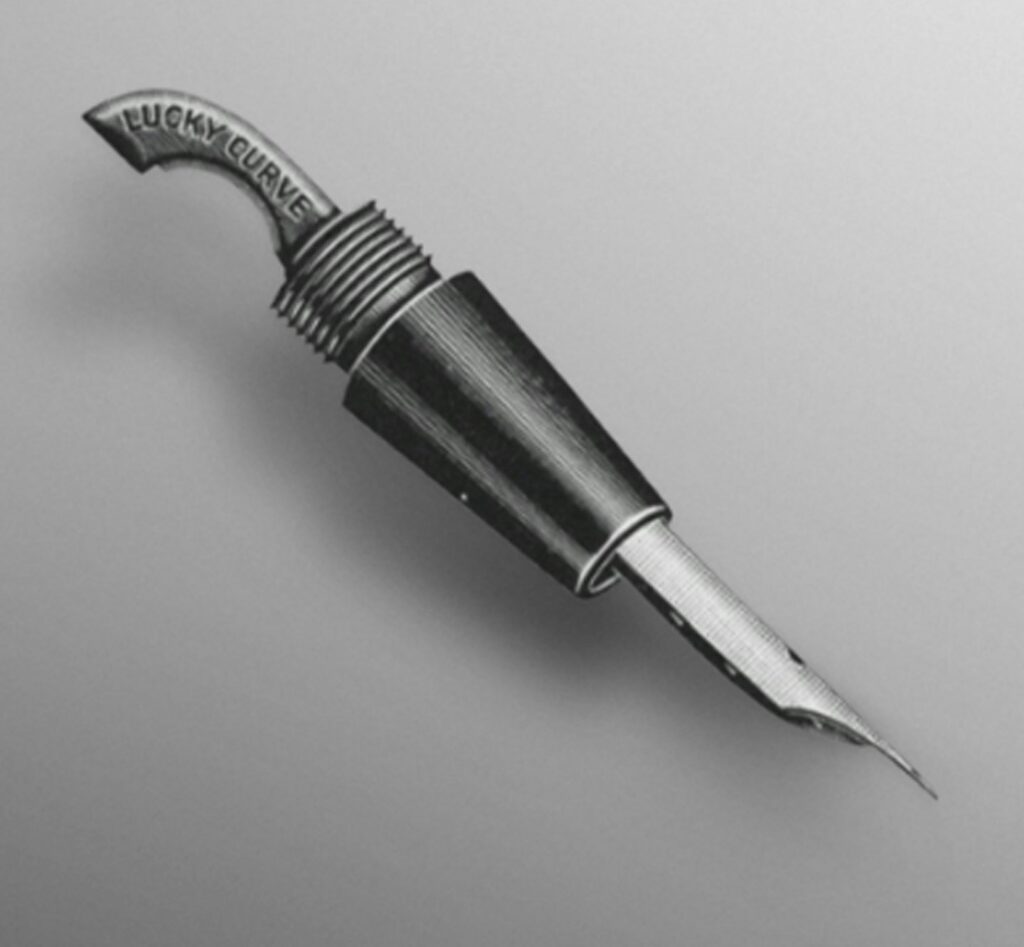 George Parker feltalálja az úttörő szivárgásgátló rendszert, a „Lucky Curve”-t – Parker második szabadalma és egy jelentős áttörés a tollkészítés történetében.