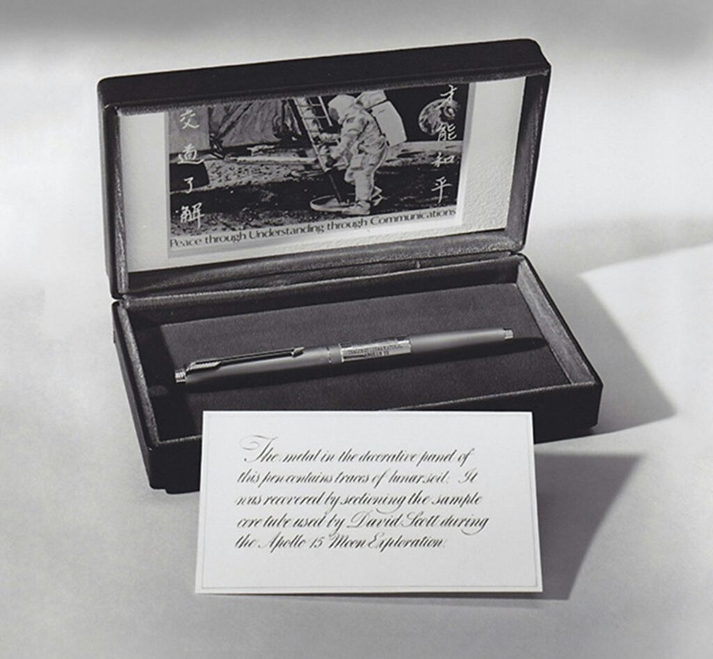 Az amerikai Holdra szállás emlékére elkészült a különleges kiadású Parker 75. A toll egy apró mennyiségű holdport is tartalmazott.