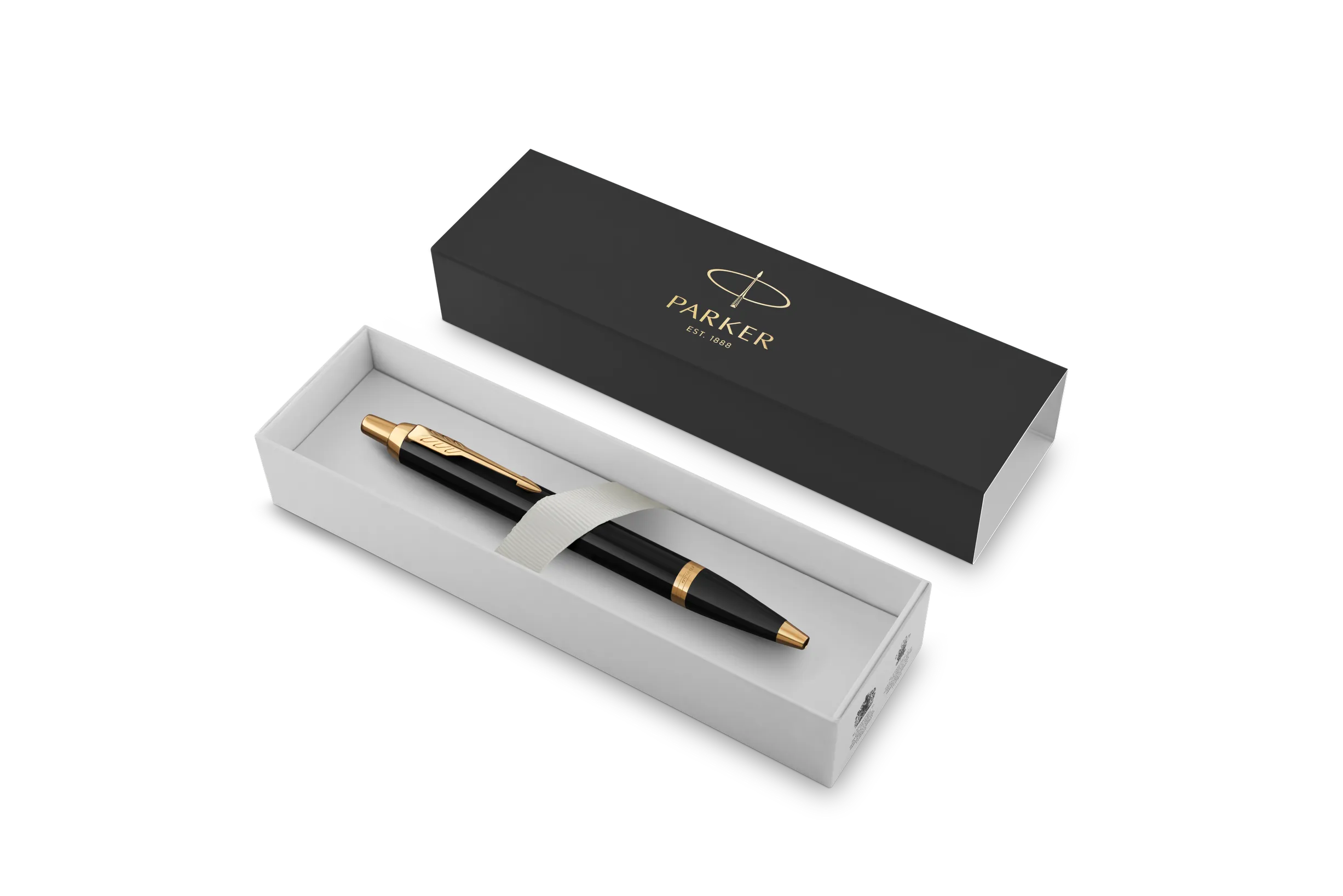 • Fényes fekete lakkozott felület aranyszínű díszítéssel és a jellegzetes PARKER nyíl alakú klipsszel.