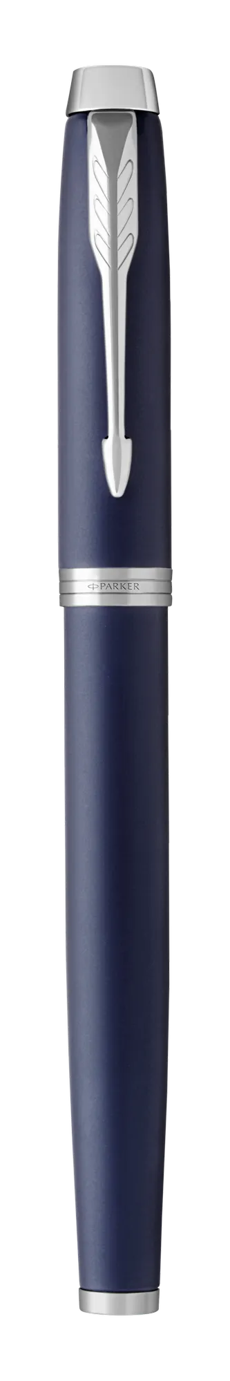 • Matt kék lakkozott felület, látványos króm díszítéssel és a jellegzetes PARKER nyíl alakú klipsszel.