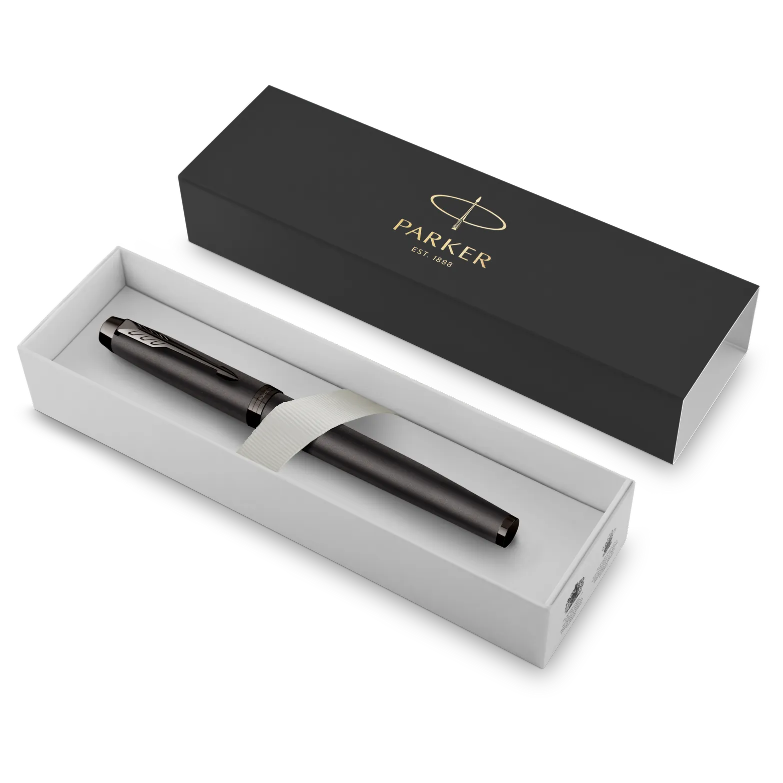 A Parker IM Monochrome rollertoll modern, elegáns és professzionális megjelenést kínál. Teljes fémtest, PVD bevonatú test és monokróm dizájn biztosítják a luxus érzetét és a tartósságot. A Quinkflow tintatechnológia sima, megbízható írásélményt nyújt. Parker ajándékdobozban érkezik – ideális üzleti ajándék vagy mindennapi használatra.
