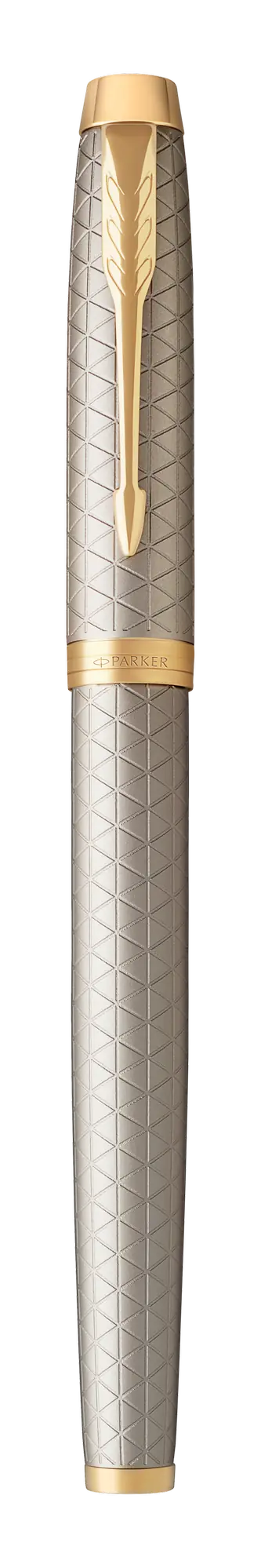 • Ezüstös fényű, matt alumínium tolltest, aranyszínű elemekkel és a jellegzetes PARKER nyíl alakú klipsszel.
