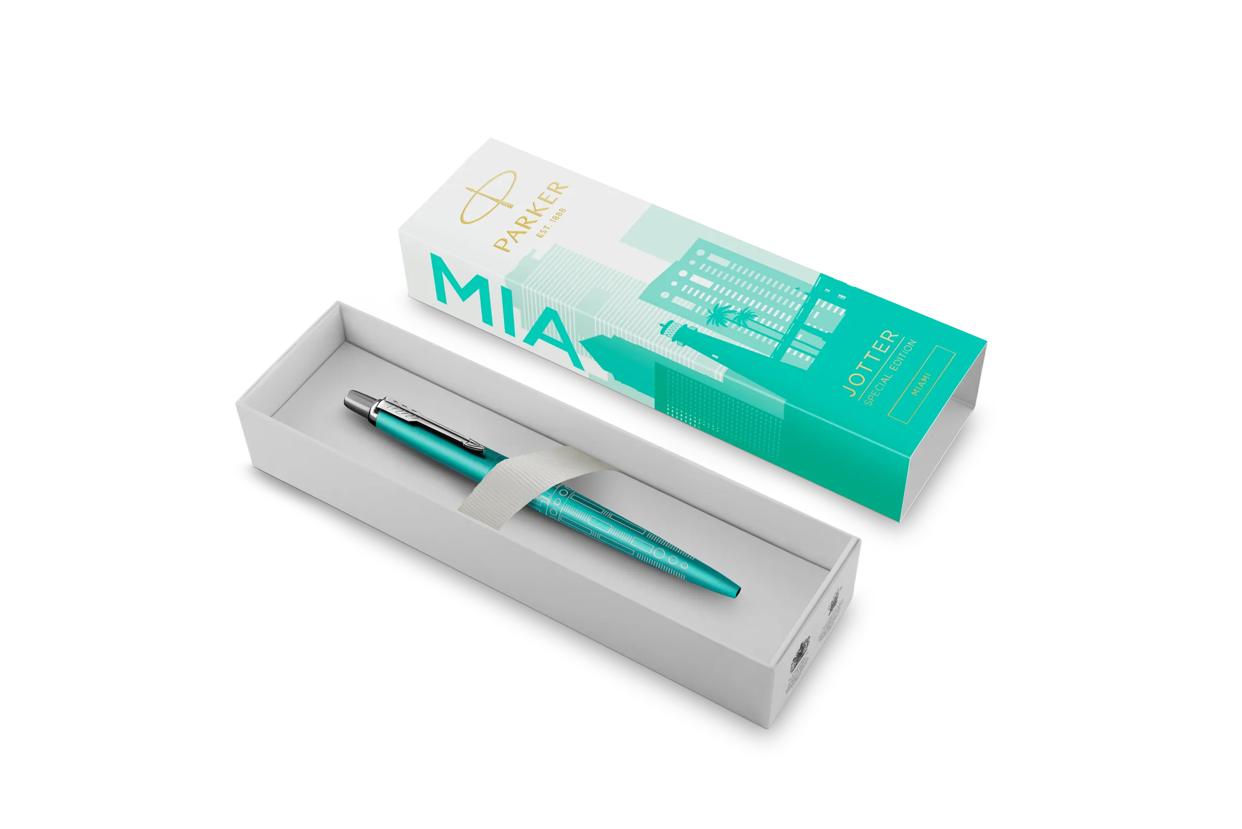 A Jotter Special Edition „Global Icons” kollekció, folytatva világkörüli turnéját híres városokon keresztül, most új, izgalmas várost hódít meg. A Jotter Special Edition Miami ihletét a vibráló Art Deco épületek, a merész geometrikus formák és a város játékos, színes karaktere adja. A dizájn az ikonikus Ocean Drive homlokzataira és a vidám, élettel teli részletekre épül, melyek Miami sajátos hangulatát tükrözik, és a toll testén is megjelennek.