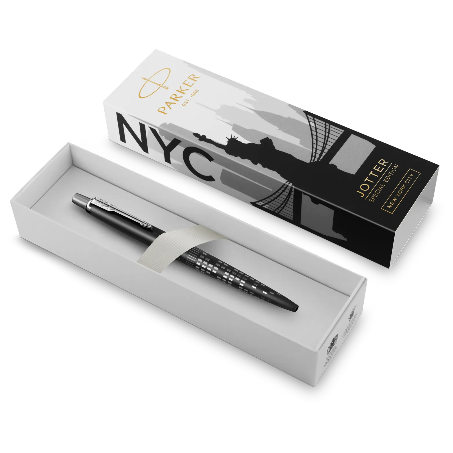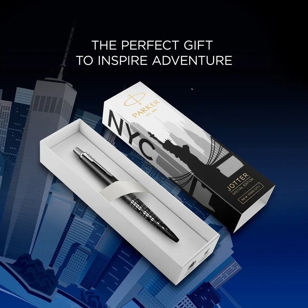 Fedezze fel a világot a PARKER Jotter limitált kiadású tollaival! A PARKER Jotter család elhívja Önt egy 4 állomásból álló világkörüli kalandra, amely első úti célja New York City, az Egyesült Államok legpezsgőbb városa, amely soha nem alszik. A PARKER szakértelmének tökéletes példája, hogy a toll testére lézer gravírozták a város motívumát, míg a matt fekete szín az eleganciát tükrözi.