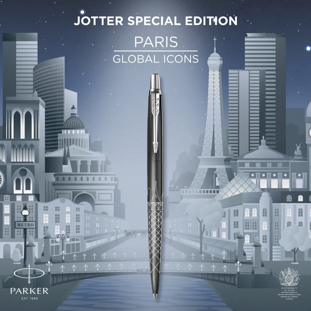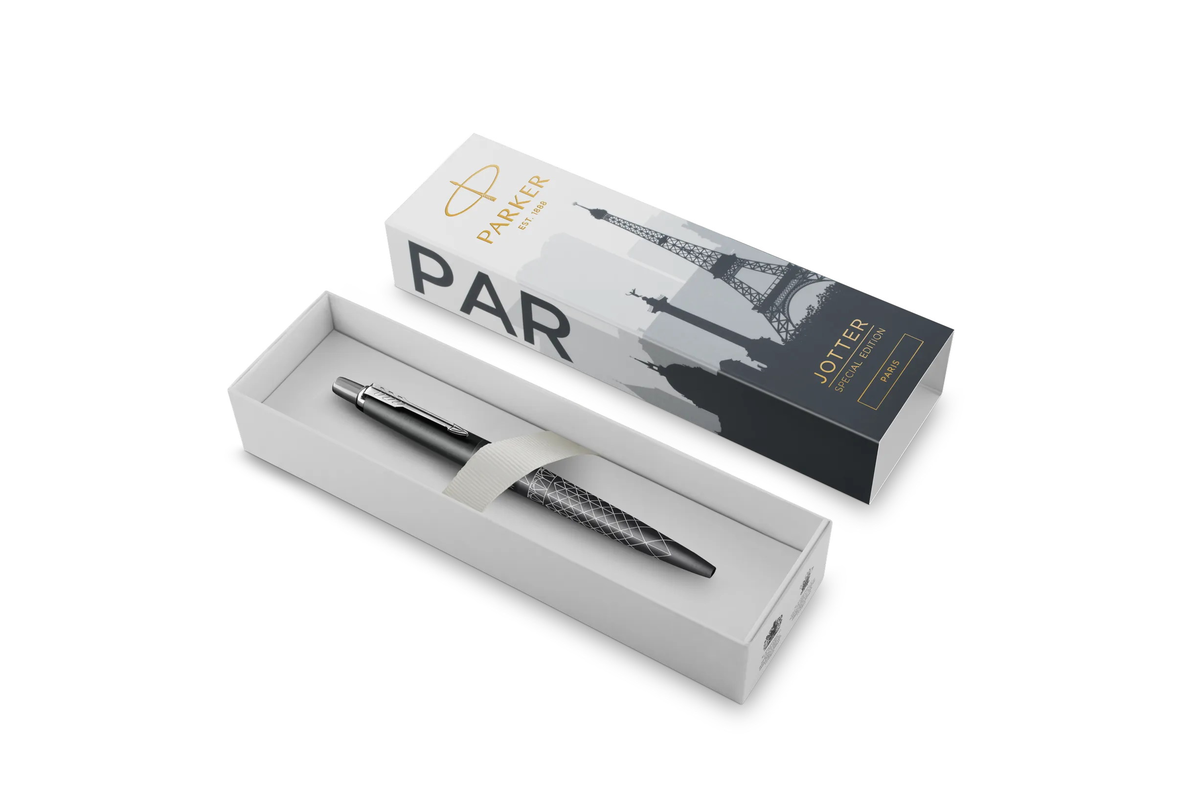 A Jotter Special Edition „Global Icons” kollekció, folytatva világkörüli turnéját híres városokon keresztül, most négy új, izgalmas várost hódít meg. Lélegzetelállító nevezetességek és varázslatos hangulat adta az ihletet a Jotter Special Edition Paris modellhez. A párizsi építészet elegáns szürke árnyalatai, a történelmi és modern emlékműveket díszítő finom minták – mind-mind hozzájárulnak a toll dizájnjához.