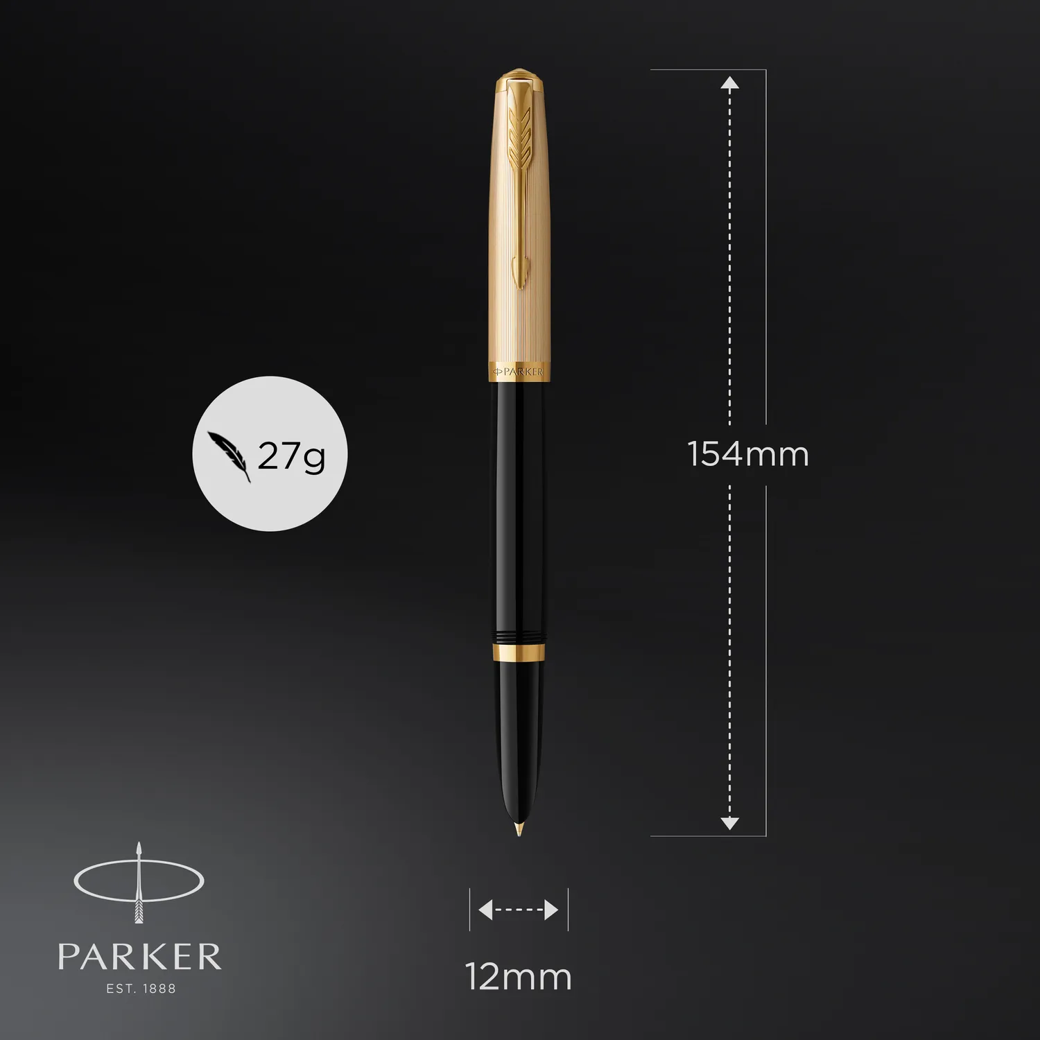 • Karcsú, áramvonalas sziluett, amely zökkenőmentes átmenetet biztosít a tolltest és a tollhegy között – a Parker kiváló kézműves szakértelmének köszönhetően.
