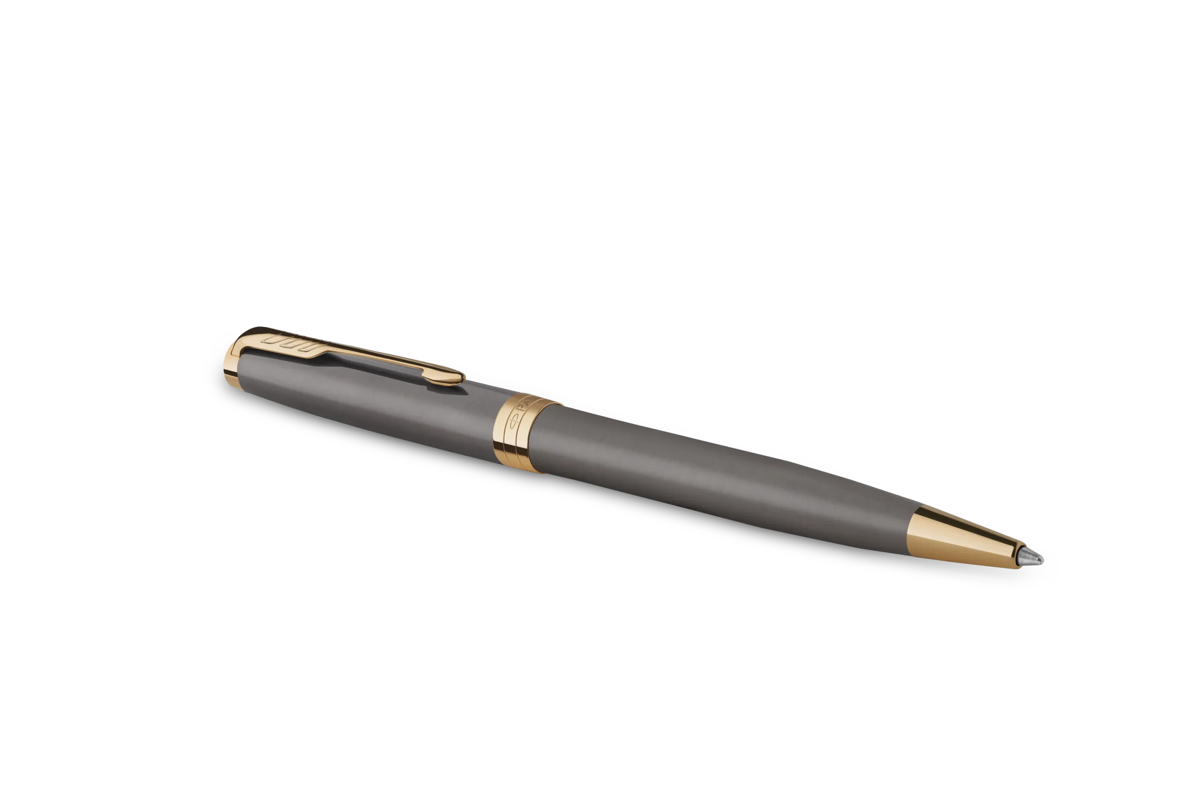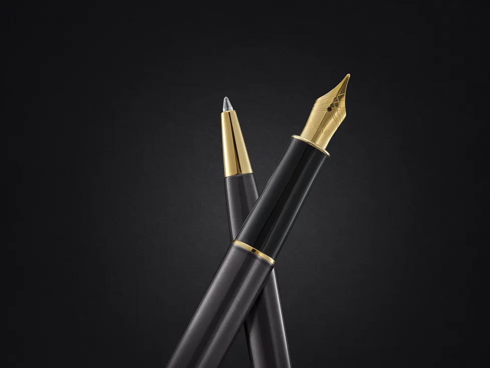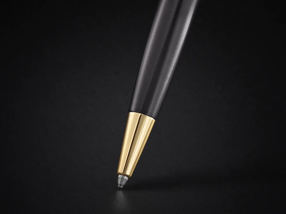 A Parker Sonnet Grey & Gold az elegancia időtlen megtestesítője. A rozsdamentes acél test klasszikus szürke lakkozással, míg a klipsz és a díszítő elemek arany PVD bevonattal készülnek, kifinomult, luxus megjelenést kölcsönözve.
