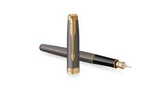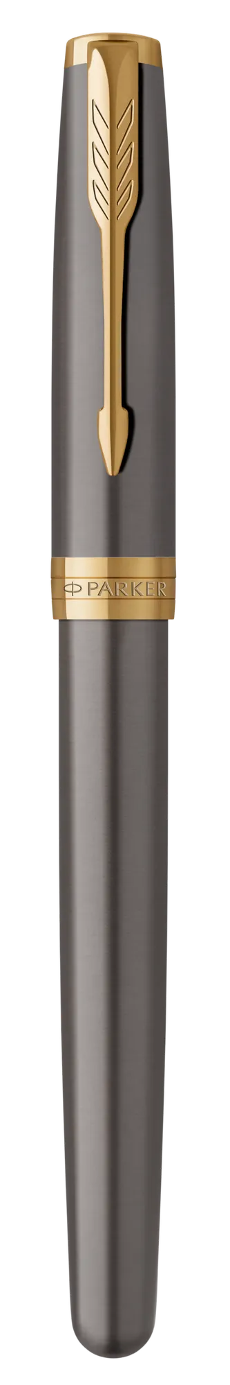 A Parker Sonnet Grey & Gold az elegancia időtlen megtestesítője. A rozsdamentes acél test klasszikus szürke lakkozással, míg a klipsz és a díszítő elemek arany PVD bevonattal készülnek, kifinomult, luxus megjelenést kölcsönözve.