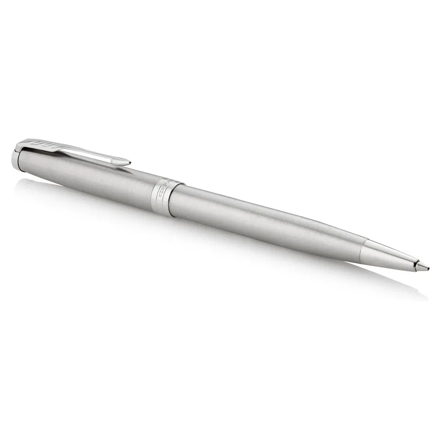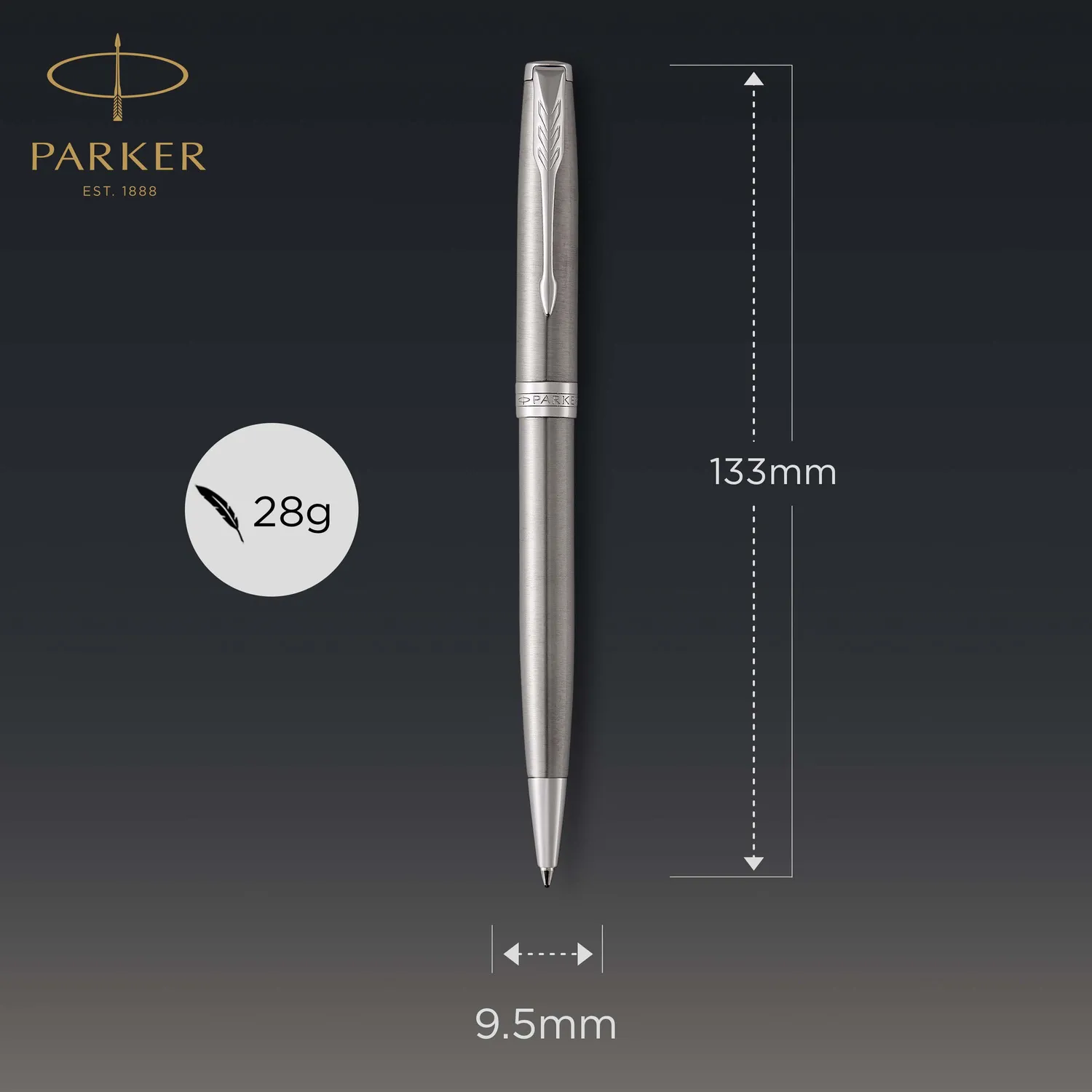 Tapasztalja meg a sima, tiszta és egyenletes írás élményét a Parker Sonnet golyóstollal. Időtálló és elegáns, visszahúzható csavaros mechanizmussal és közepes heggyel rendelkezik. A szálcsizoszlt rozsdamentestestet és kupakot ezüst bevonatú klipsz és díszítőelemek egészítik ki, így minden részlet a Parker kézműves hagyományait tükrözi. Minden toll kézzel szerelt és ellenőrzött, hogy hibátlan minőséget és kivételes írásélményt biztosítson.