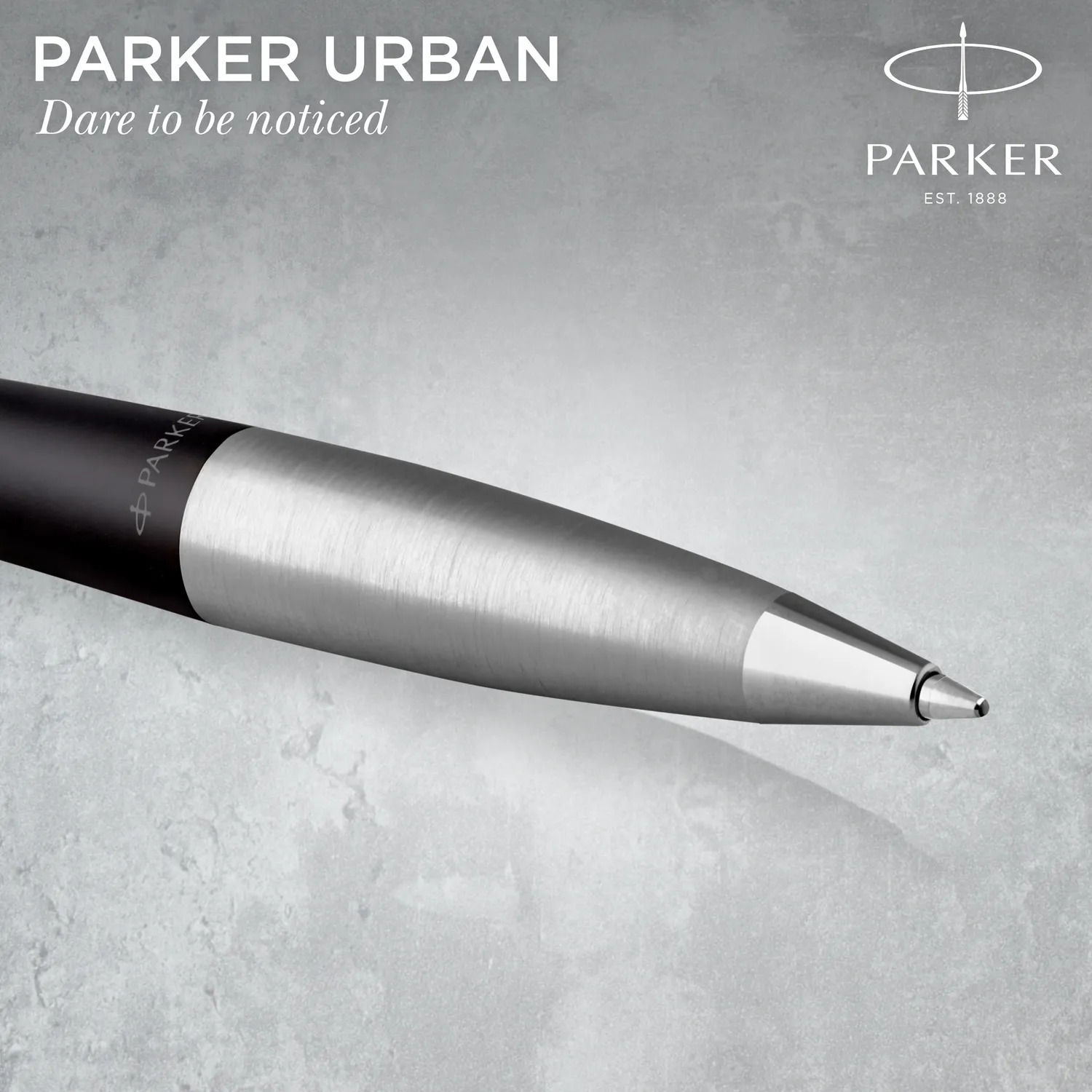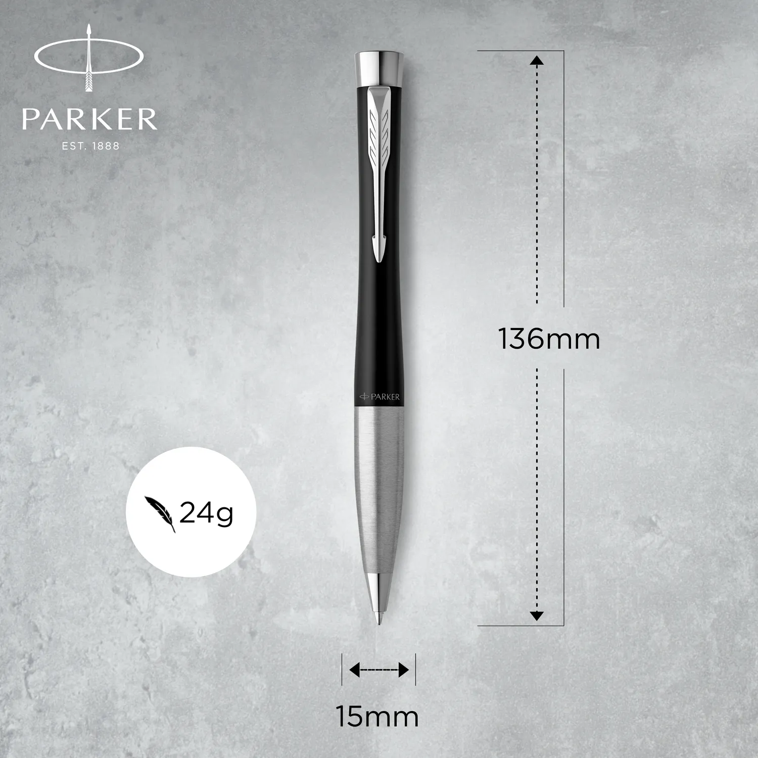 A PARKER Urban Twist golyóstoll dinamikus megjelenésével és modern formavilágával hívja fel magára a figyelmet. Ívelt sziluettje és optimalizált súlyelosztása tökéletesen kiegyensúlyozott írásélményt biztosít. A Quinkflow tinta sima és folyamatos írás élményt biztosít.